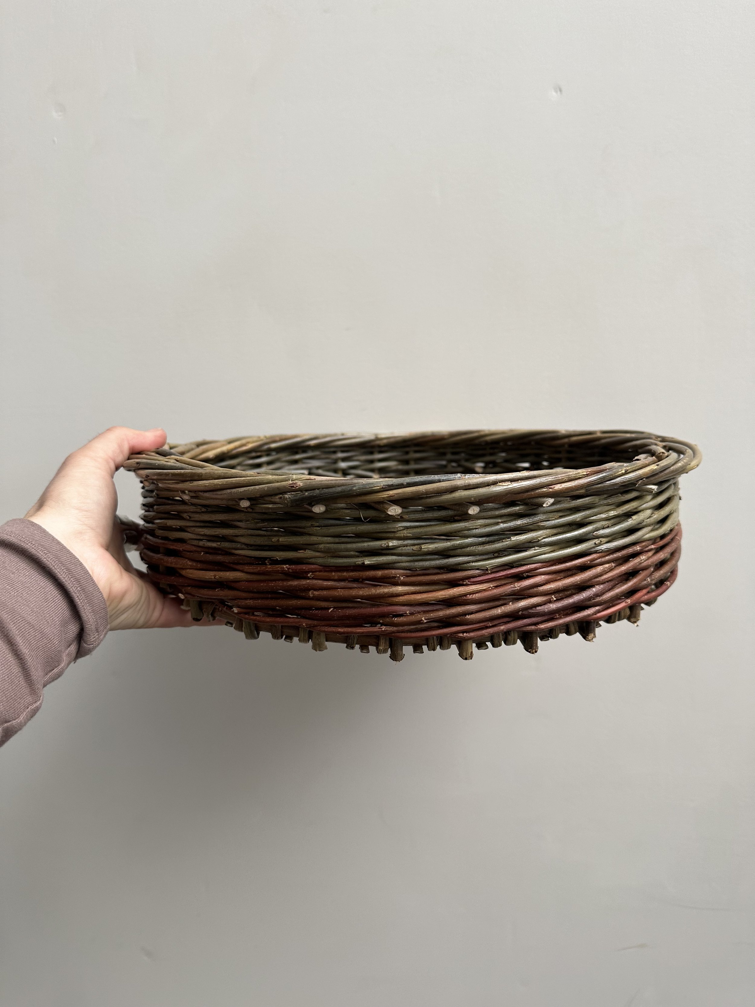 A one-day workshop learning how to make round willow baskets with a Catalan base. Suitable for all abilities, this design makes it possible to achieve a good size round basket in a day. Starting with a pre-dried willow hoop, we will learn how to build the base using tension and creating a beautiful contemporary design showing off the natural willow colours. Participants will learn one or two weave patterns to build up the sides, depending on time, and finish with a rod border. Packed with traditional techniques, this basket could be used on the table for fruit or bread, storage around the home, or displayed on the wall.
